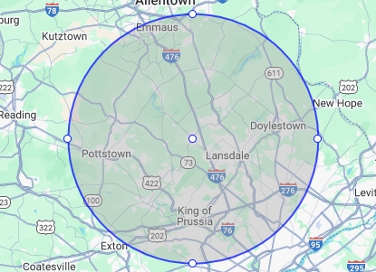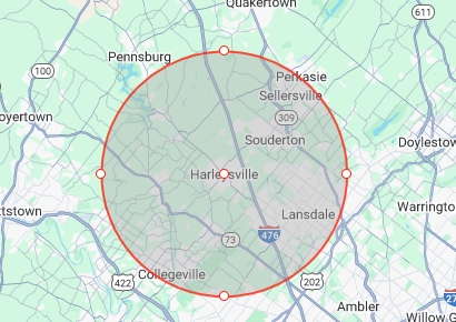 For Residential Customers we typically service 10 miles from Harleysville & Hatfield, PA. Commercial service are up to one hour radius.